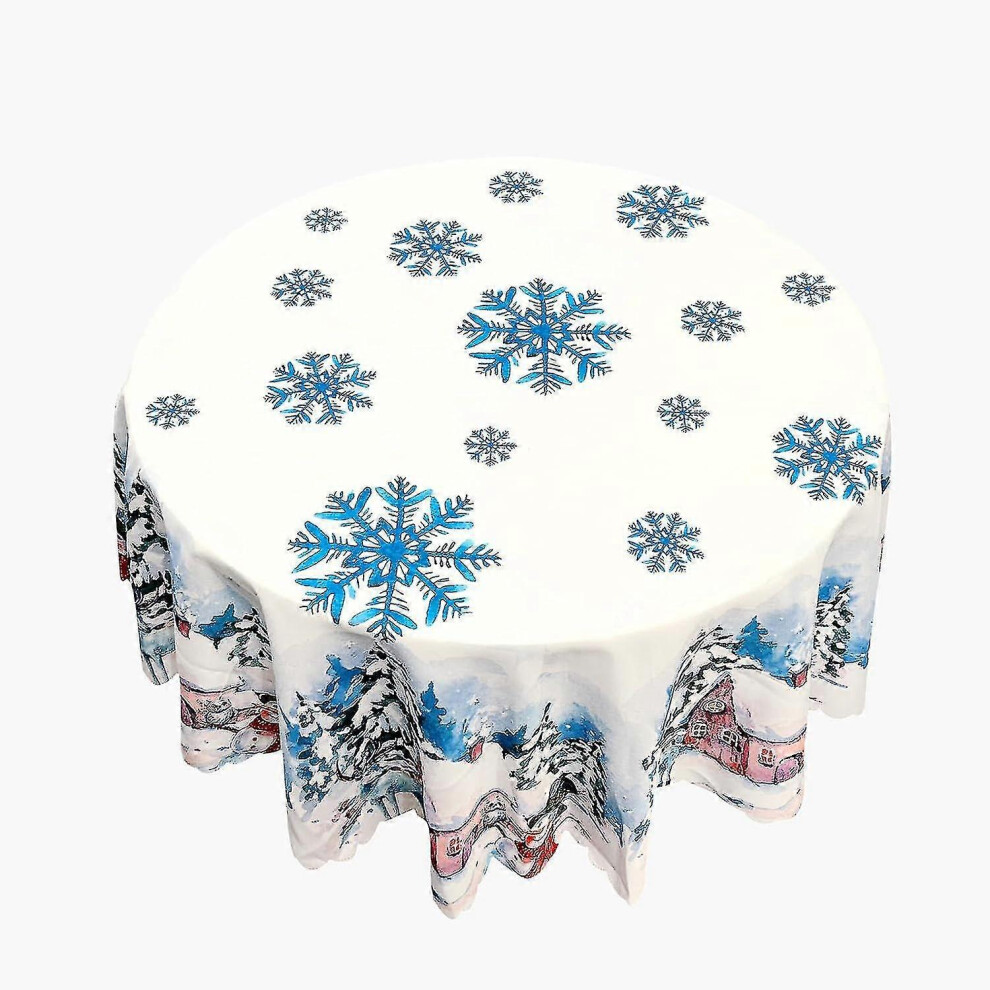 (A) Christmas Tablecloth Snowflake Christmas Round Tablecloth Christmas Decoration Tablecloth Home Holiday Table Cover New Year 2024