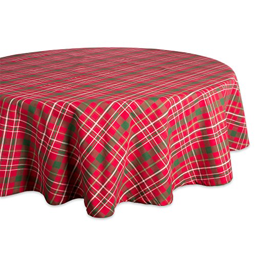 DII Tartan Holly Plaid, Cotton, Red & Green, Round Christmas Tablecloth, 70" Round
