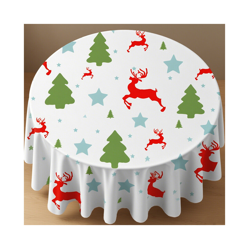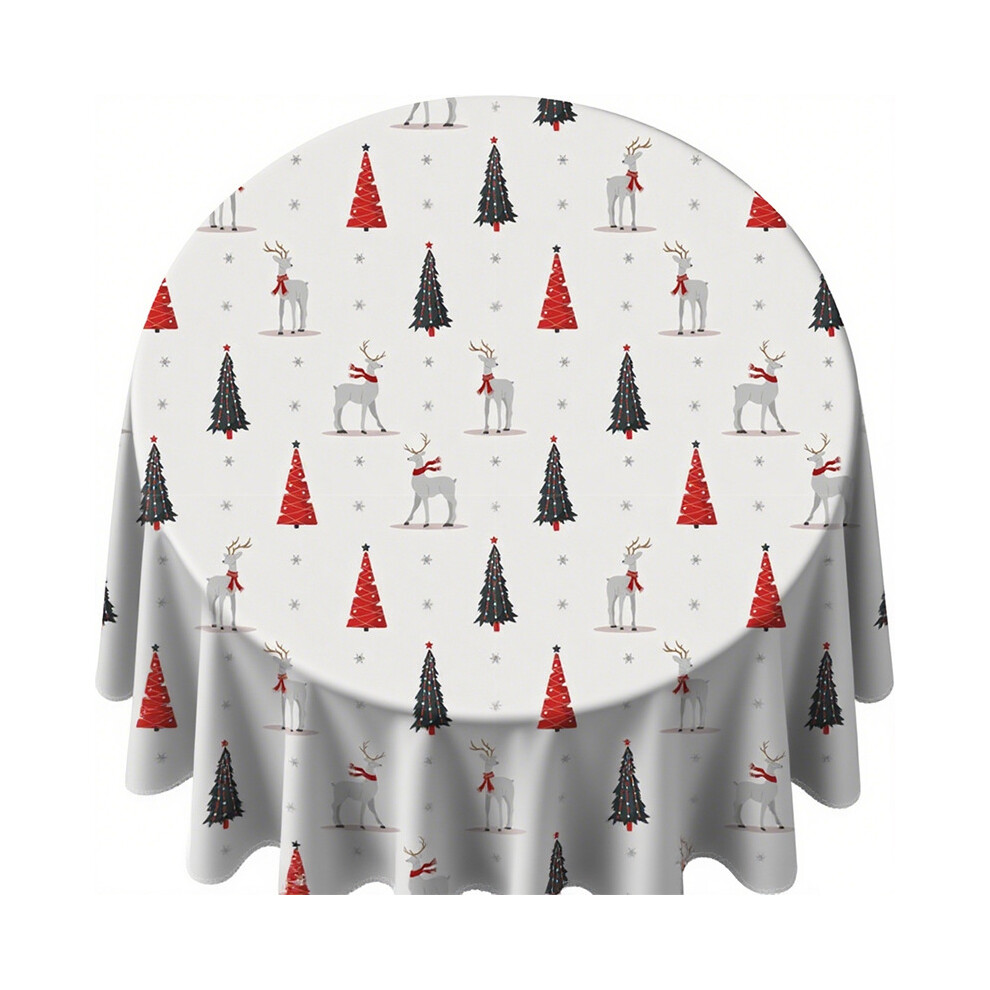 Treer Christmas Round Tablecloth - Wipeable Elastic Edged Fitted Table Cover for Dining Room, Kitchen, Picnic, Party (150cm, Gift)