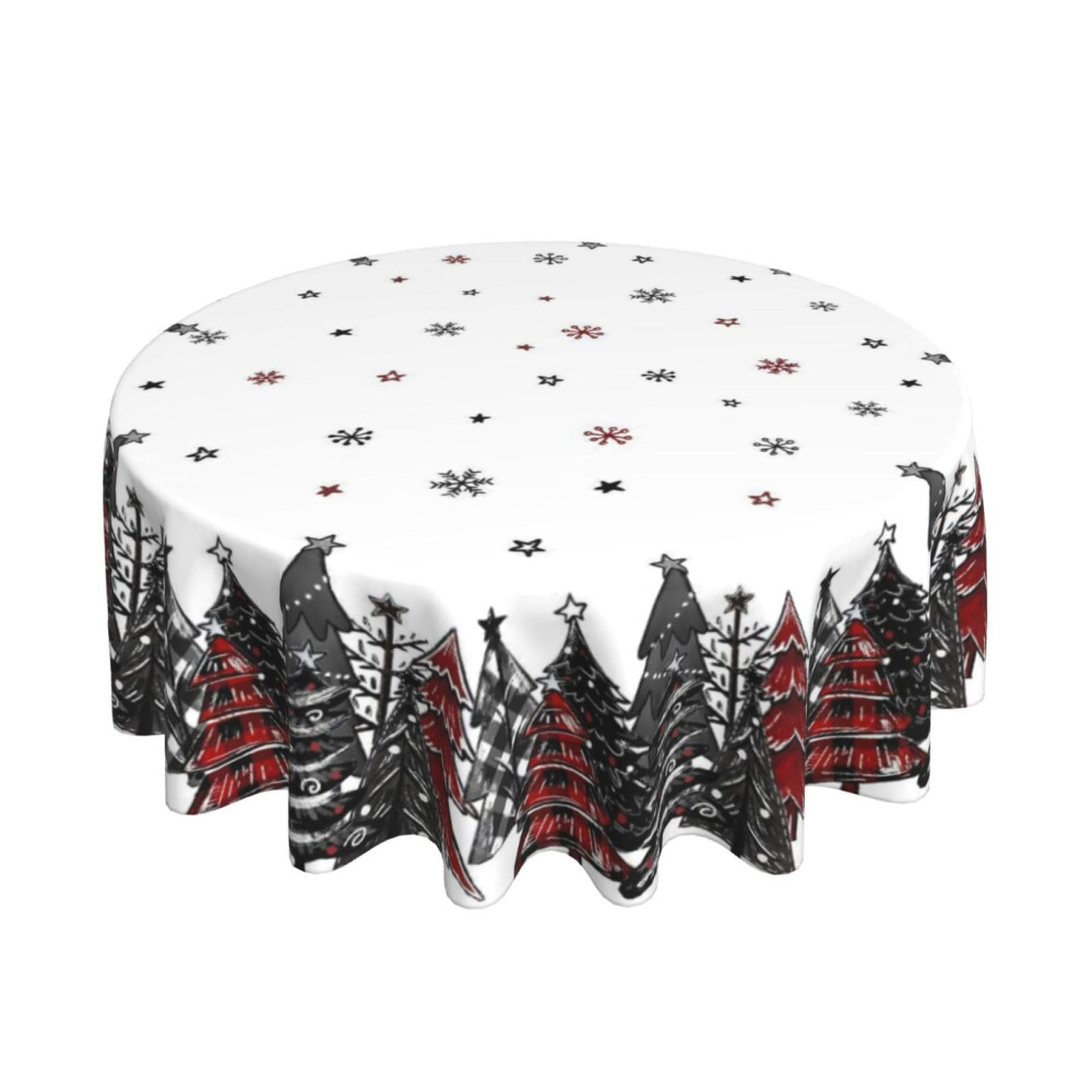 Christmas Round Tablecloth 70 Inch Black Red Snowflake and Tree Design Wrinkle Resistant Indoor Outdoor