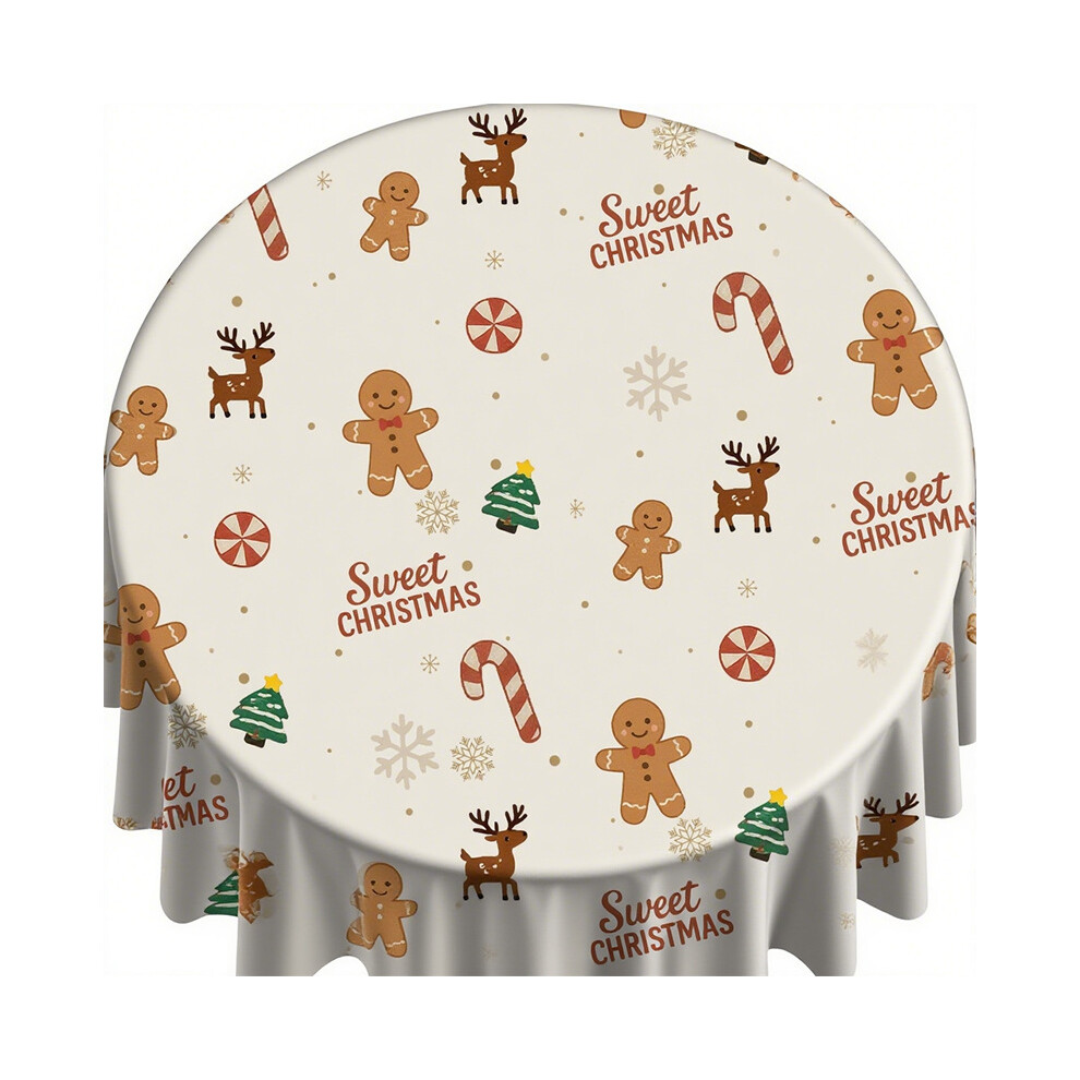 (D, 59 inches) Christmas Tablecloth Round Christmas Tablecloth Washable Christmas Tablecloth