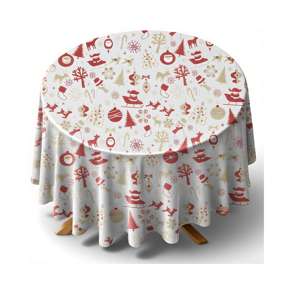 (A, 59 inches) Christmas Tablecloth Round Christmas Tablecloth Washable Christmas Tablecloth