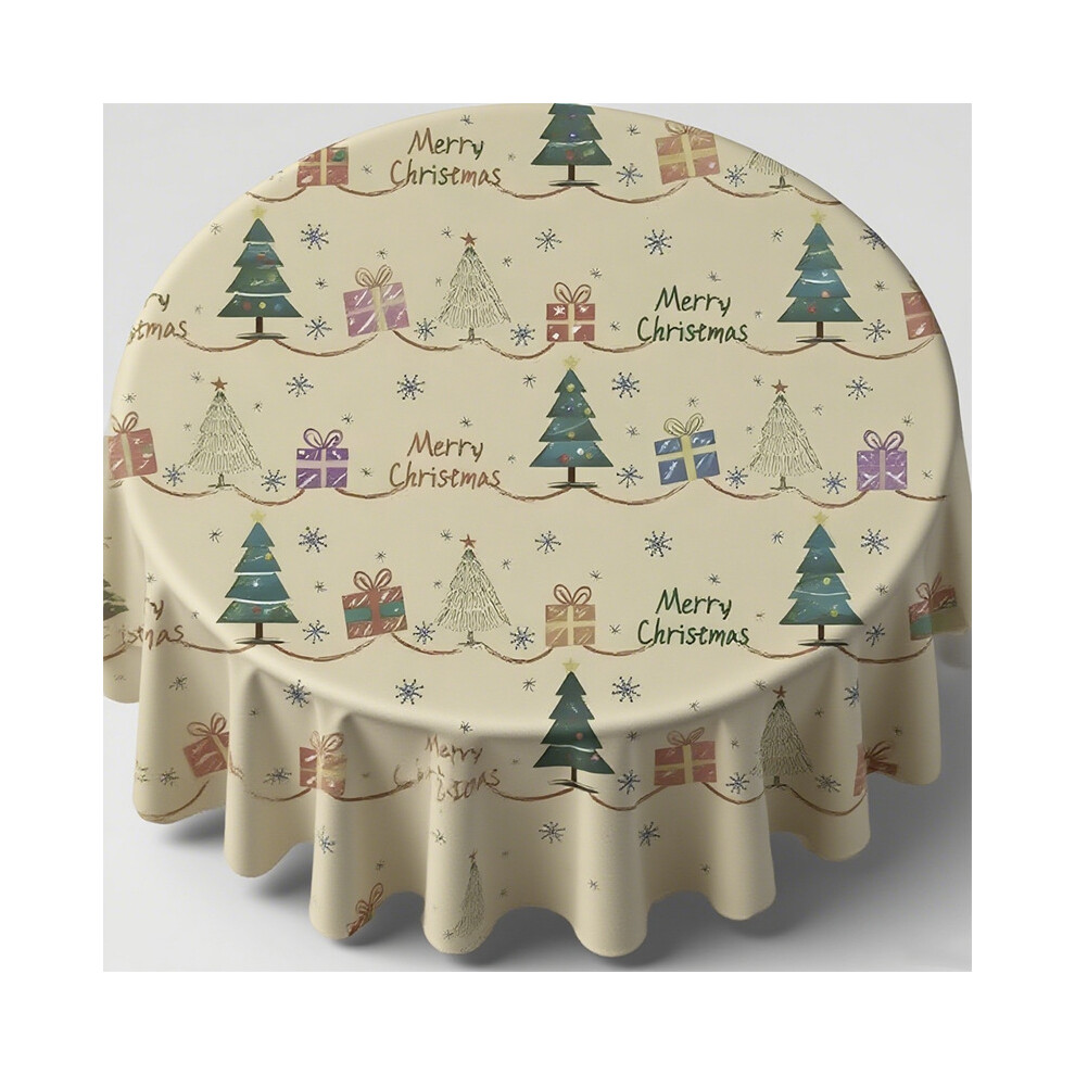 Treer Christmas Round Tablecloth - Wipeable Elastic Edged Fitted Table Cover for Dining Room, Kitchen, Picnic, Party (140cm, Gift)