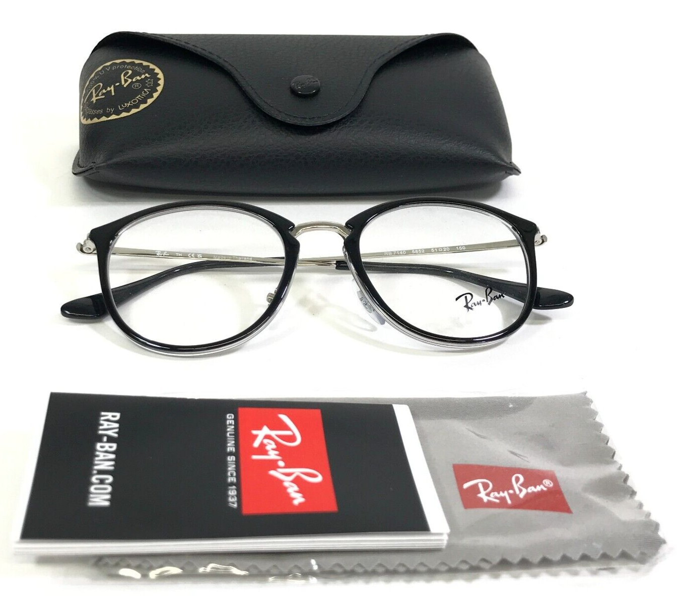 Ray-Ban Eyeglasses Frames RB7140 5852 Black Silver Clear Round 51-20-150