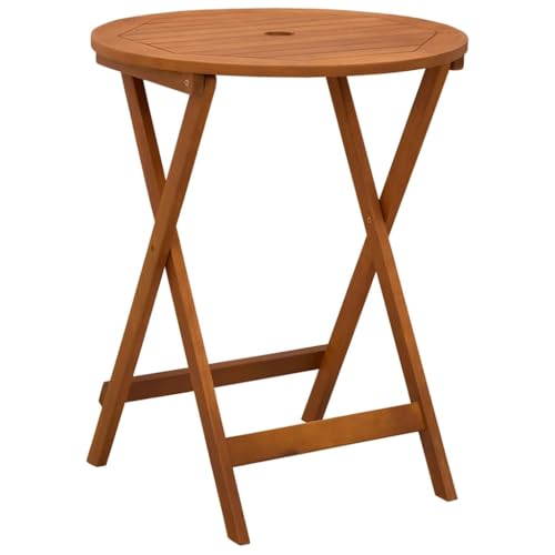 Canditree Outdoor Round Folding Dining Table, Solid Teak Wood Folding Garden Table with Parasol Hole