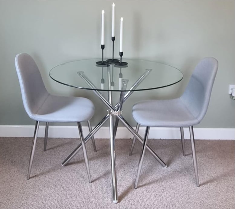 Small Round Glass Dining Table Breakfast Bar Kitchen Living Room Furniture Metal