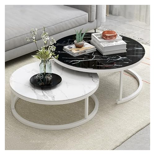 FXLUHAY Nesting Coffee Table Set Of 2,Modern Side Table,Round Glass Coffee Tables,Living Room Sofa Table,for Living Room Balcony Office(Black+white B,70+50cm)