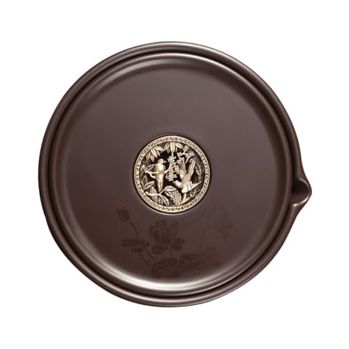 UOELRLFoV Chinese Style Tea Serving Tray with Hollow Center for Drainage Bakelite Round Teapot Mat Practical Tea Kettle Plate Offices and Giving NO.381