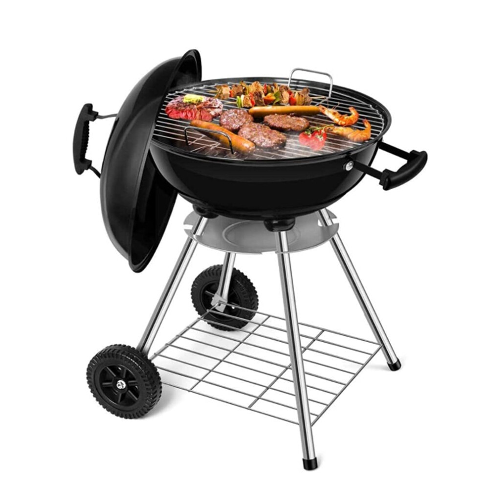 Portable Round Kettle Charcoal Grill with Wheels for Outdoor BBQ Camping Garden 46x73cm