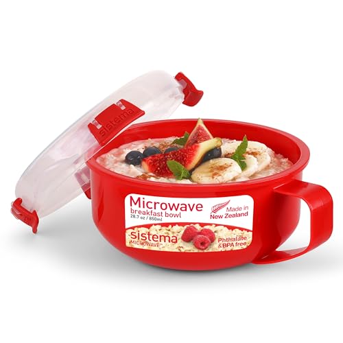 Sistema Microwave Breakfast Bowl | 850 ml | Round Microwave Container with Steam Release Vent | BPA-Free | Red | 1 Count