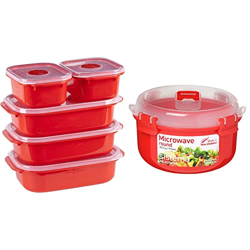 Sistema polypropylene round microwave 0.915 kitchen container,Red (Pack of 2)