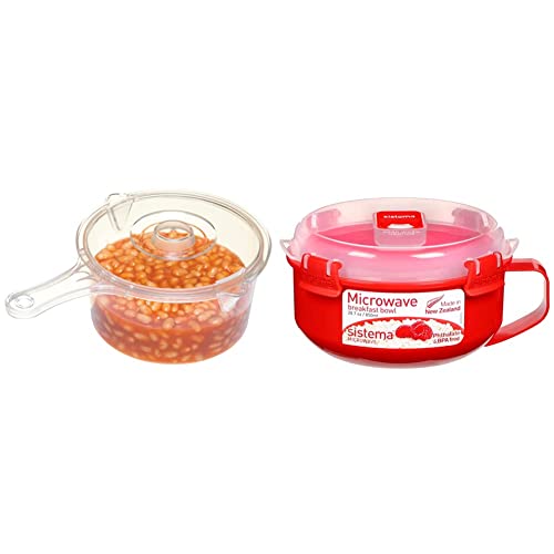 KitchenCraft Microwave Saucepan with Lid, BPA Free Plastic, 900 ml & Sistema Microwave Breakfast Bowl | Round Microwave Container with Lid & Steam Release Vent | 850 ml | BPA-Free | Red | 1 Count