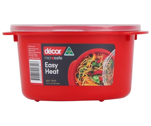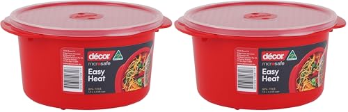 Décor Microsafe 1.5L Round food container. Microwave, freezer, dishwasher safe and BPA Free with air release vent and handles. Master microwave cooking and reheating with Microsafe Red. (Pack of 2)
