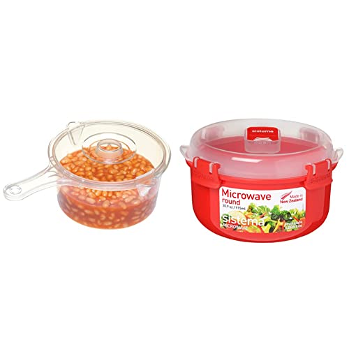 KitchenCraft Microwave Saucepan and Lid, BPA-Free Plastic Microwave Saucepan, 900 ml, Transparent & Sistema Microwave Round Bowl - Microwave Food Container - 915 ml - BPA-Free - Red/Clear
