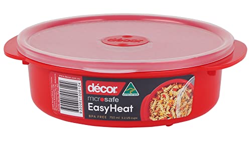 Décor Microsafe 750ML Microwavable round food container Microwave, freezer, dishwasher safe and BPA Free with air release vent and handles Master microwave cooking and reheating with Microsafe. Red