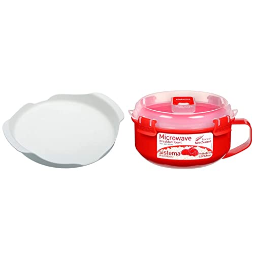 KitchenCraft Microwave Tray with contoured Handles, Non-Slip feet, Ideal for Food containers & Sistema Microwave Breakfast Bowl | Round Microwave Container with Lid & Steam Release Vent
