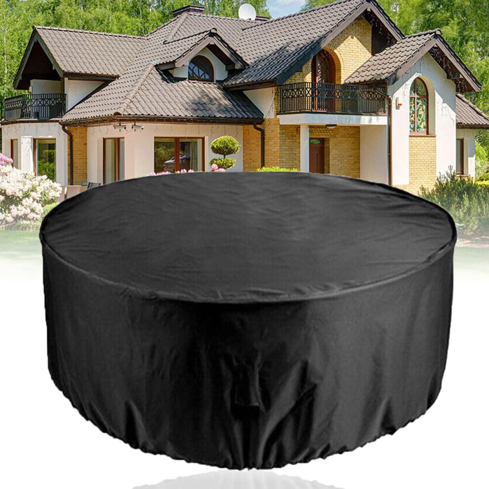 Outdoor Furniture Cover Waterproof Round Patio Table Chairs Set, Windproof UVResistant Black 185x110cm