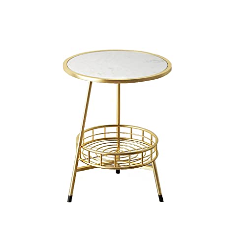 JWBXFYXW Bedside Table Home Storage Bedside Table Home Marble Countertop Coffee Table Living Room Bedroom Bedside Cabinet Shelf Round Side Table Side Tables Bedroom(White,S)