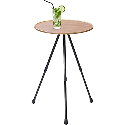 TOPIND Camping Table Round, Outdoor Side Tables with Small Tripod Stand Side Table Height Adjustable Aluminum Small Round Side Table for Patio Yard Balcony Garden Deck Lawn Bedside (Wood color)