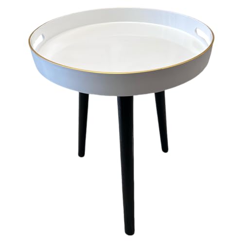 Simmer Stone Round Indoor Side Tables with Detachable Wooden 3 Legs, Versatile Tray Table, Perfect For Round Coffee Table Tea, and Relaxation Time 17.7 Inch (White)