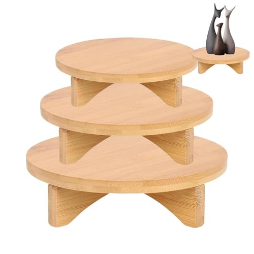 Wooden Stool Display Stand 3 Small Round Side Tables Creative Planter Tray Stable Decorative Pottery Stand Balcony Garden