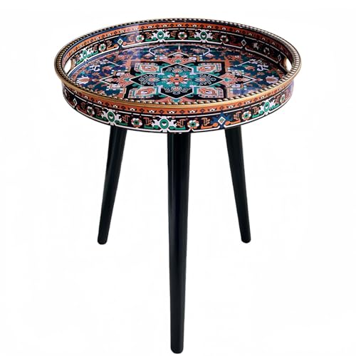 Simmer Stone Marble Round Indoor Side Tables with Detachable Wooden 3 Legs, Versatile Tray Table, Perfect For Round Coffee Table Tea, and Relaxation Time (15 Inch- Bohemian)