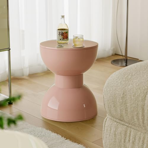 GQMYCDM Drum Side Table, Plastic Hourglass Modern End Table, Round Side Tables, Accent Table for Small Spaces, Ottoman Table, for Living Room Bedroom Outdoor Entryway, No Assembly Required(Pink)