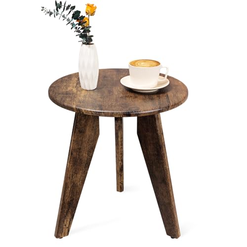 GOLDFAN Wooden Round Side Tables Small Retro Coffee Table Sofa End Tables Lamp Tables for Living Room Office,40cm