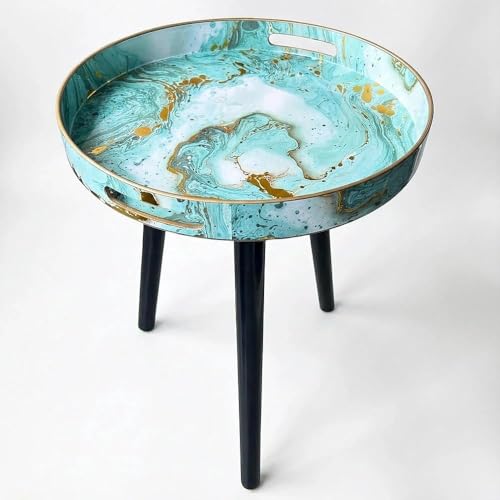 Simmer Stone Round Indoor Side Tables with Detachable Wooden 3 Legs, Versatile Tray Table, Perfect For ound Coffee Table Tea, and Relaxation Time 17.7 Inch (Marble green)