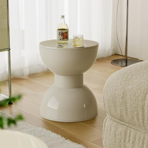 GQMYCDM Drum Side Table, Plastic Hourglass Modern End Table, Round Side Tables, Accent Table for Small Spaces, Ottoman Table, for Living Room Bedroom Outdoor Entryway, No Assembly Required(Gray)