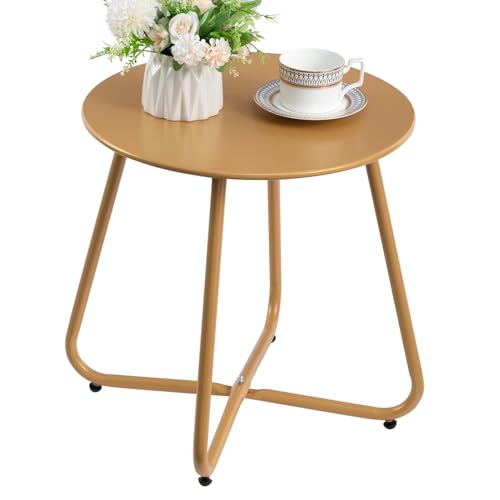 HollyHOME Outdoor Side Table Small Patio Table Round Balcony Side Tables Metal Round Coffee Tables for Garden, Yellow