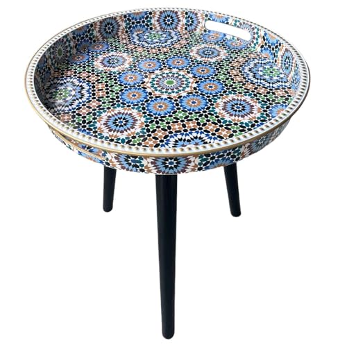 Simmer Stone Round Indoor Side Tables with Detachable Wooden 3 Legs, Versatile Tray Table, Perfect For Round Coffee Table Tea, and Relaxation Time 17.7 Inch (Multi Moroccan)