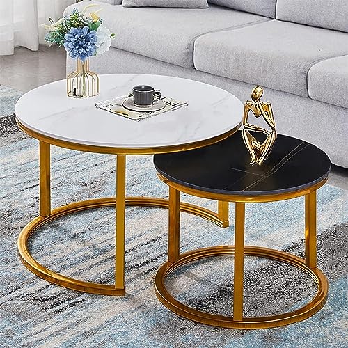 Modern Living Room coffe table Living Room Nesting Coffee Table,Round Stacking Coffee Side Tables,Modern Minimalist Slate Small End Table Set Of 2,Metal Frame Easy Assembly ( Color : White+blackgold F
