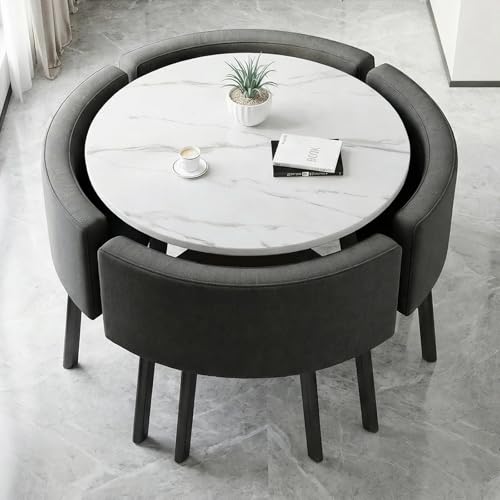 Modern Round Kitchen Table and Fabric Chairs Set 4, Dining Table and 4 Chairs Space Saver Home Office Table Set Reception Saving Set Space Table,A17-90 * 90 * 75cm