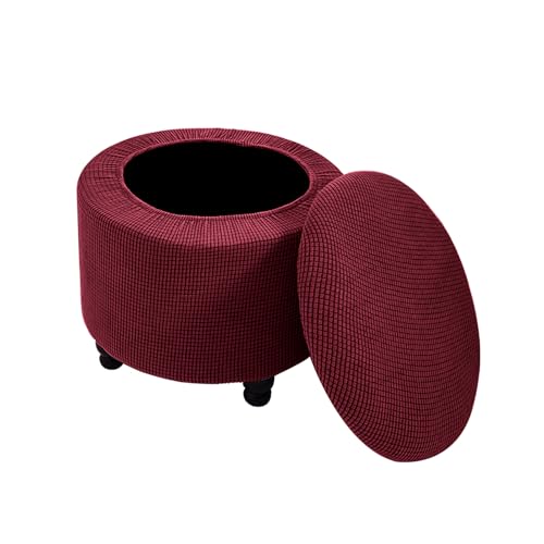 DEZYPZAM Round Storage Ottoman Chair Cover | Elastic Footstool Covers | Ottoman Covers | Covered Storage Ottoman Chair Cover Dustproof Sofa Cover (Wine Red)