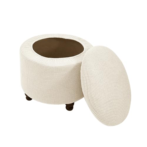 DEZYPZAM Round Storage Ottoman Chair Cover | Elastic Footstool Covers | Ottoman Covers | Covered Storage Ottoman Chair Cover Dustproof Sofa Cover (White)