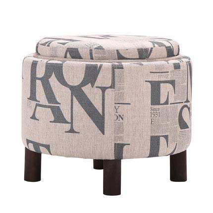 MEILISHAOMEI Round Linen Ottoman Storage Foot Stool Pouf Bench Seat,toy Organizer Box Foot Rest Change Shoe For Home & Office-beige 42x42x46cm(17x17x18inch)
