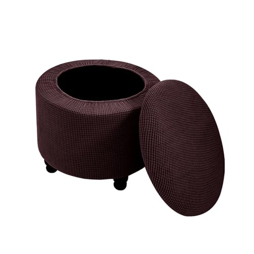 DEZYPZAM Round Storage Ottoman Chair Cover | Elastic Footstool Covers | Ottoman Covers | Covered Storage Ottoman Chair Cover Dustproof Sofa Cover (Brown)