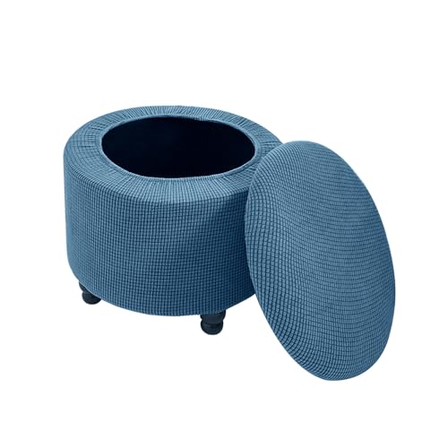DEZYPZAM Round Storage Ottoman Chair Cover | Elastic Footstool Covers | Ottoman Covers | Covered Storage Ottoman Chair Cover Dustproof Sofa Cover (Blue)