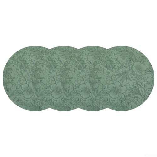 SHALONYOU Round Placemats Set Of 4, Double-Sided Floral Placemat, Waterproof PU Leather Round Table Mats, Washable Dining Pads for Dining Table Kitchen Party Decoration/1317(Green)