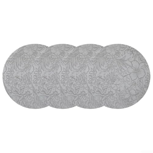 SHALONYOU Round Placemats Set Of 4, Double-Sided Floral Placemat, Waterproof PU Leather Round Table Mats, Washable Dining Pads for Dining Table Kitchen Party Decoration/1317(Gray)