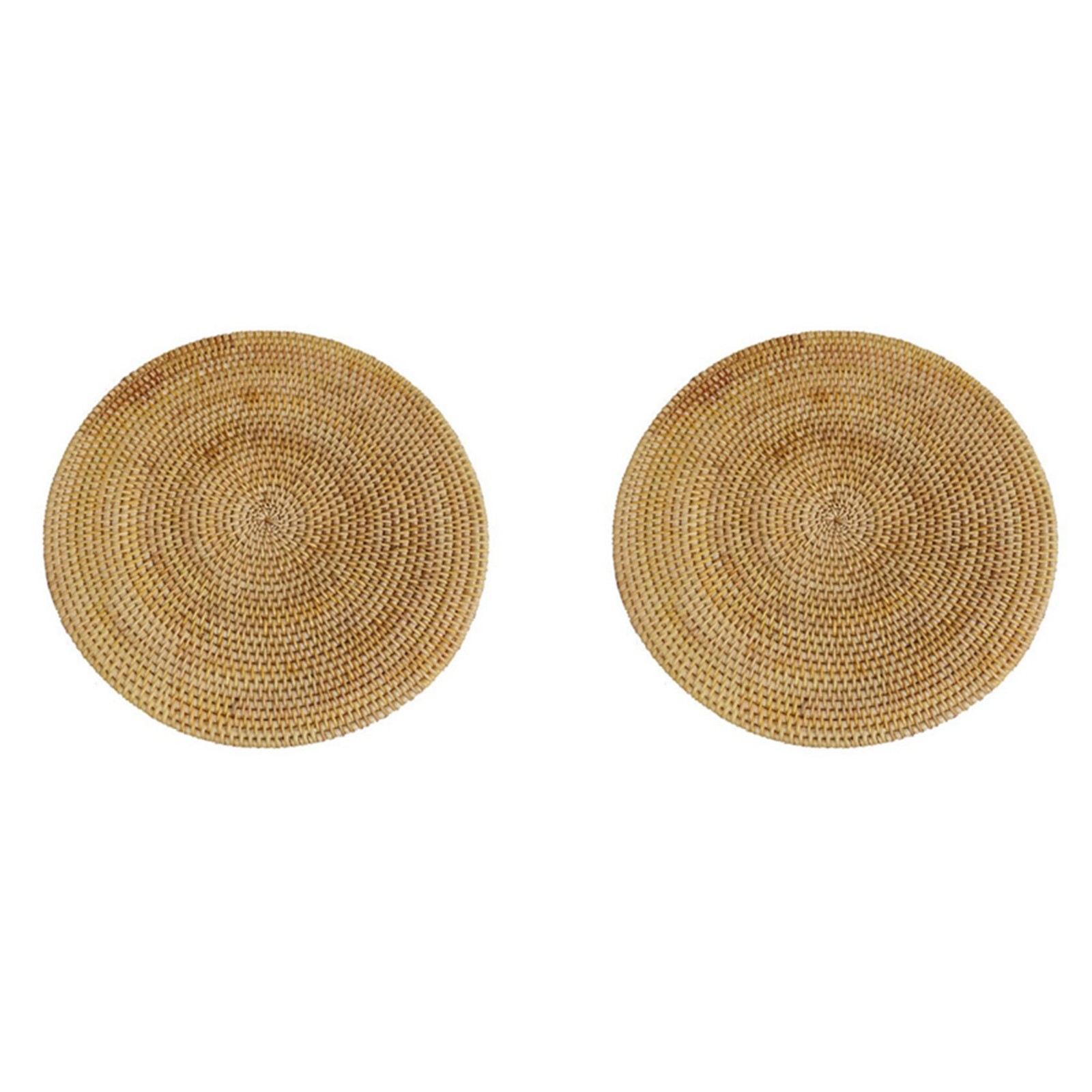 2X(Handwoven Rattan Placemats,Round Wicker Table Mats, Natural Woven3561