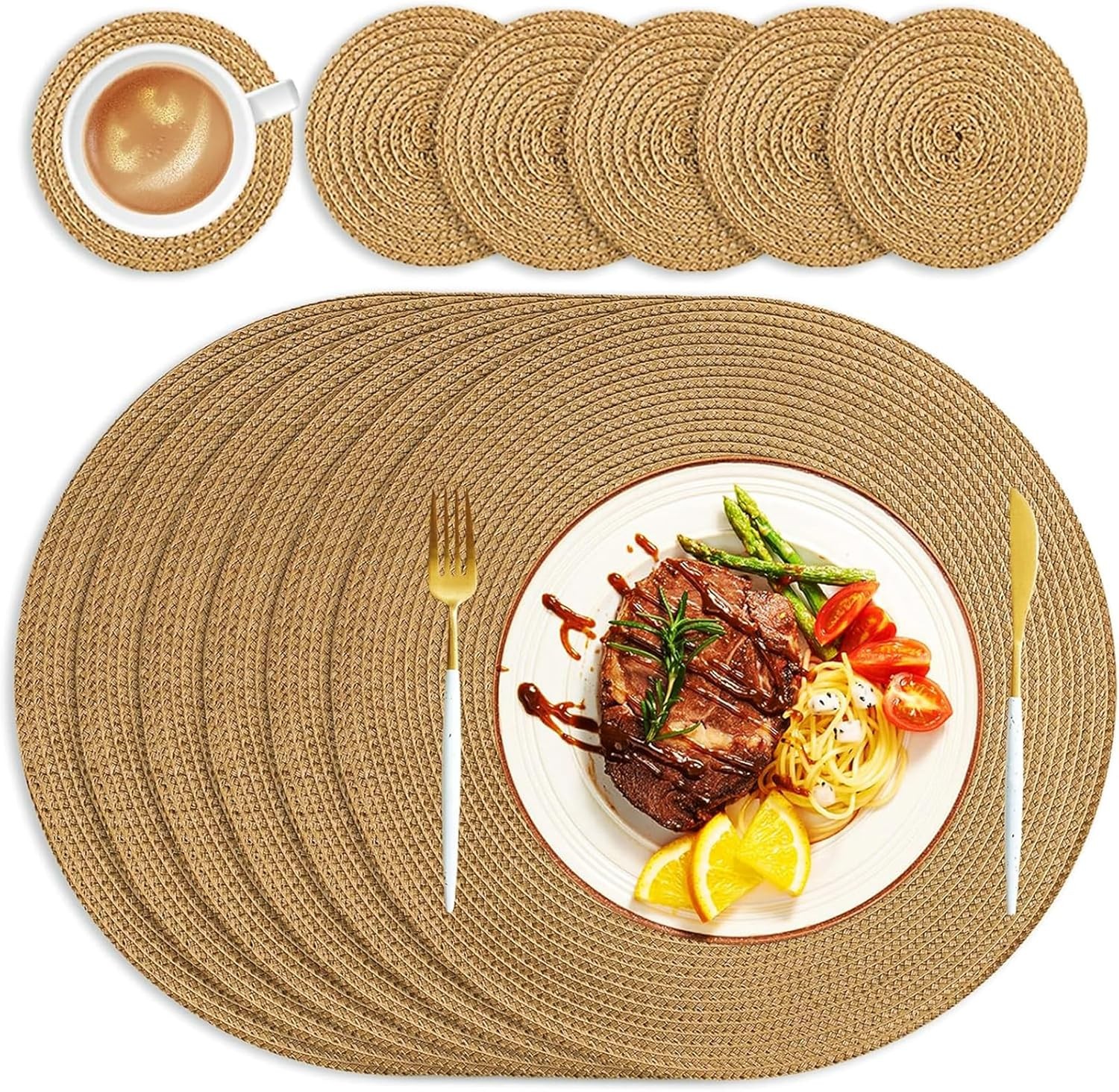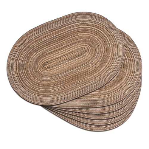 Oval Braided Placemats 12x18 Inch Round Table Mats for Dining Tables Natural Woven Heat Resistant Place mats Set of 6 (Oval Brown)