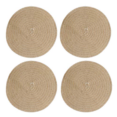 Set of 4 Jute Placemats, Natural Hessian Round Table Mats, 38cm
