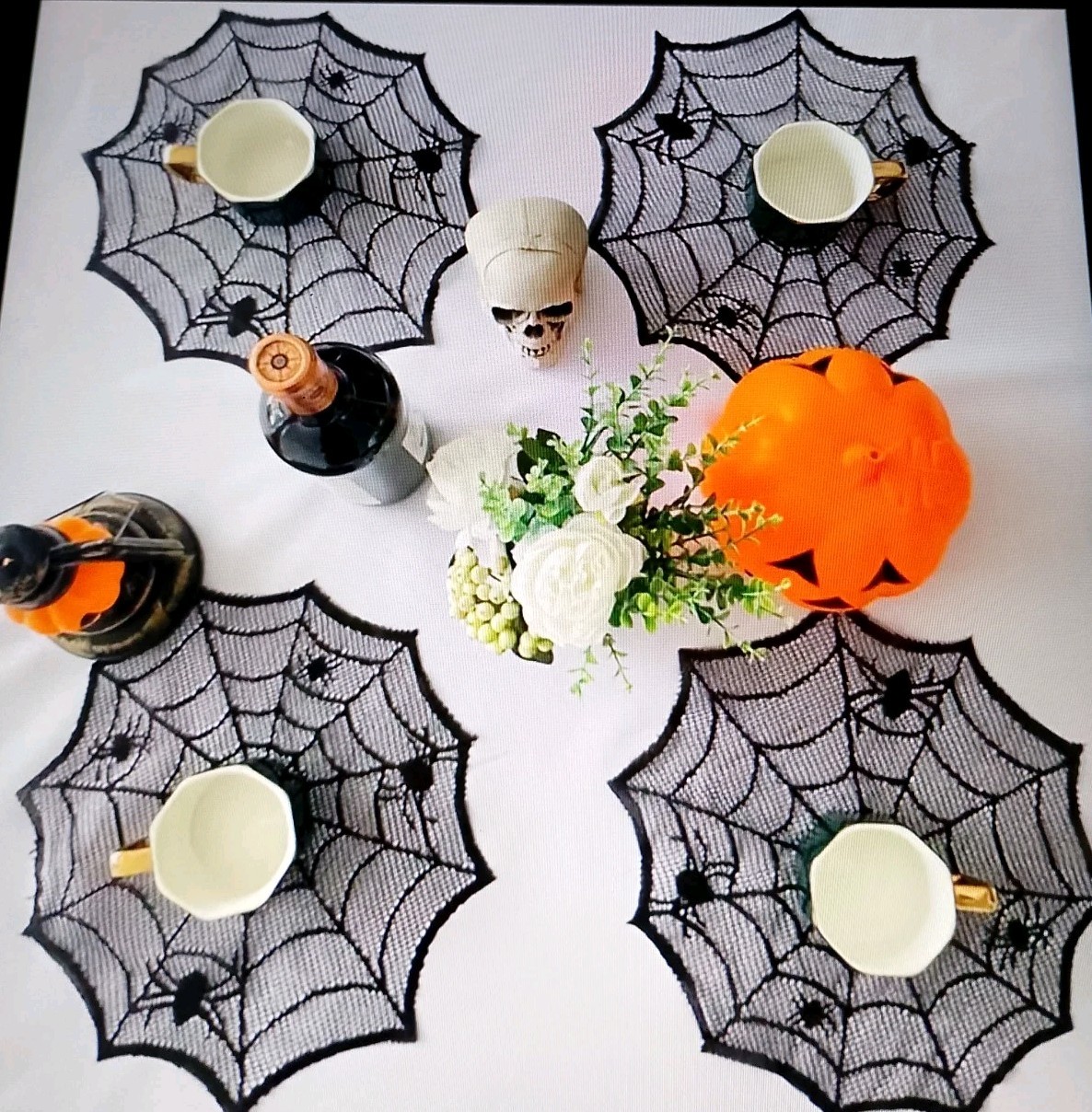 4pc HALLOWEEN GOTHIC Spider Web Design ROUND TABLE MATS 30cm See Pics Funky!!!