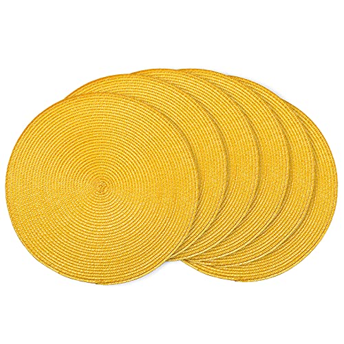 AHHFSMEI Round Braided Placemats 15 Inch Round Table Mats for Dining Tables Natural Woven Heat Resistant Place mats Set of 6 (Yellow)