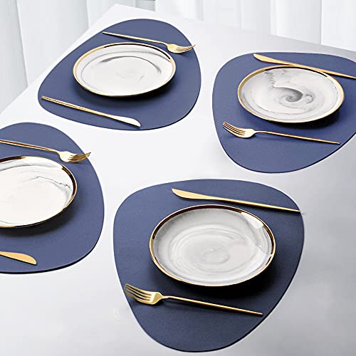 YONOVO 4Pack Faux Leather Placemats Set, Round PU Dinning Table Mats, Wipeable Easy to Clean Stain Resistant Heat Resistant Waterproof Place Mats Durable Plate Mats for Table Nordic Style (Navy Blue)
