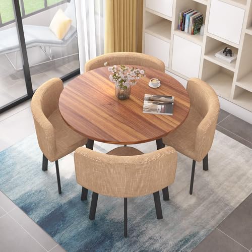 XFZJCHAP Modern 5 Piece Dining Set: Round Table with 4 Chairs for Kitchen Office or Living Room Space Saving Design Easy Assembly