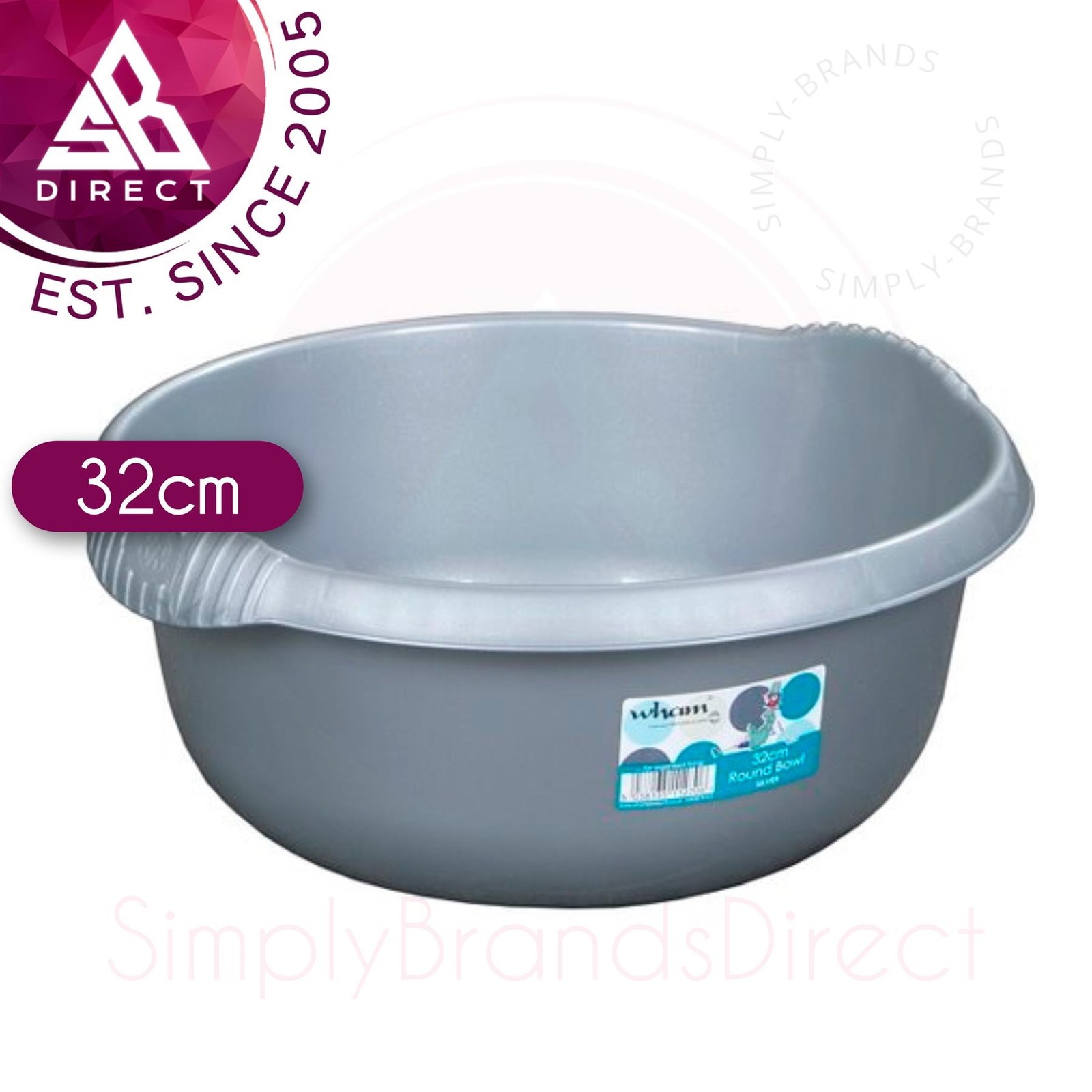 Wham Casa Round Plastic Kitchen Washing Up Bowl│Easy to Use│28cm│Silver│InUK