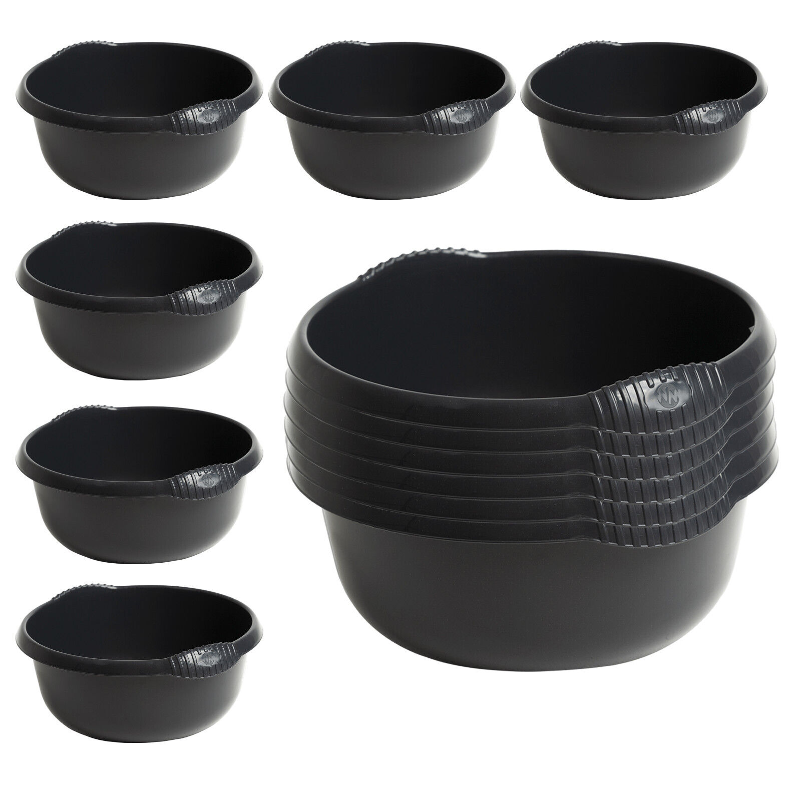 12x Plastic 36cm Round Washing Up Bowl 10L Capacity Kitchen Sink Basin Dark Grey